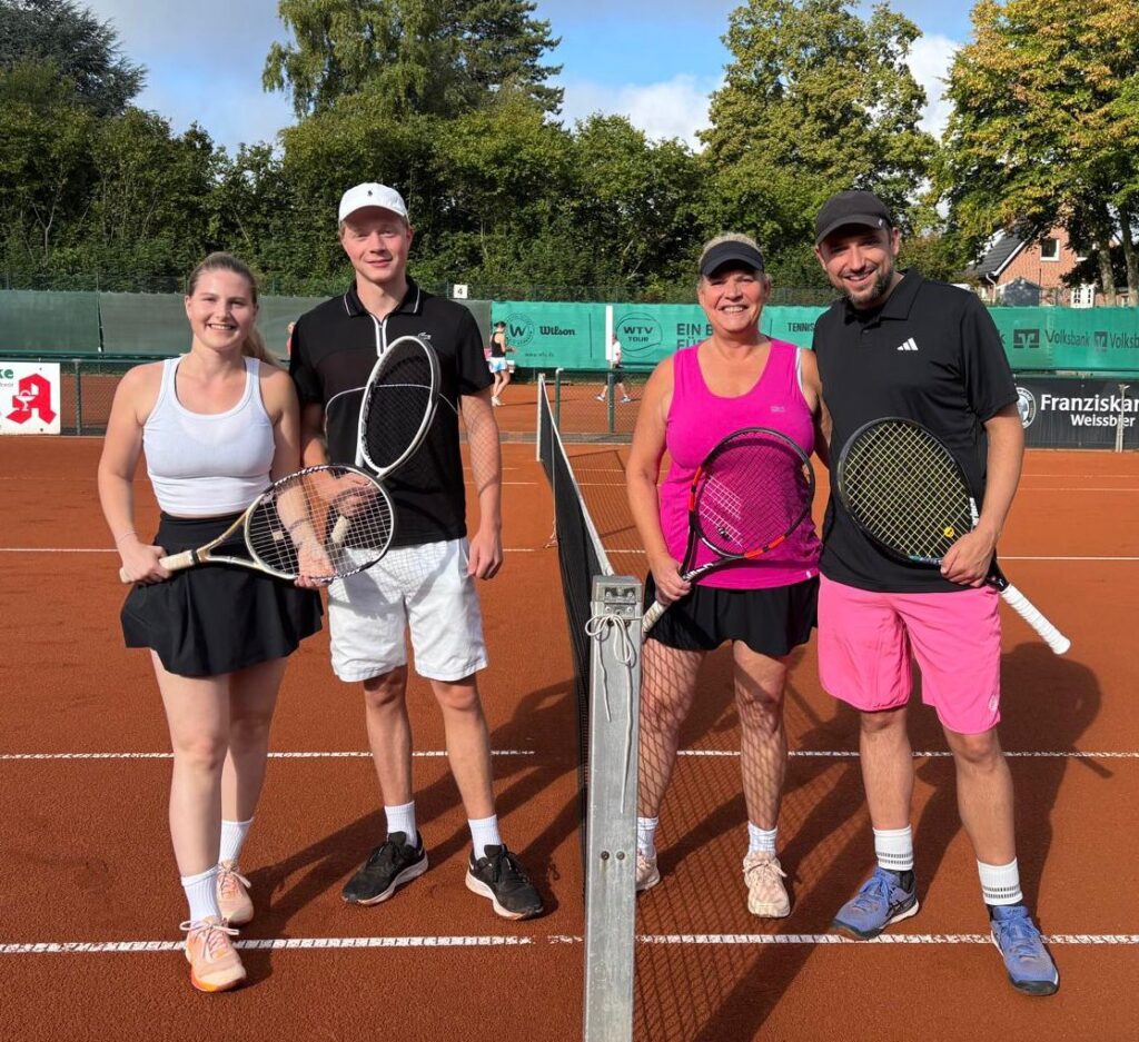 29. September 2025Am vergangenen Wochenende (13/14.09.2025) fanden auf der Tennisanlage des TuS gleich 2 LK-Turniere statt. Am Samstag war es bereits der 7. Burgmannsstädter Tenniscup, der durch seine hohe Beliebtheit schon eine Warteliste bei der Anmeldung benötigte und am Sonntag fand zum ersten Mal ein Mixed Doppel-LK Turnier statt, das sich mit 7 gemeldeten Teams auch nicht verstecken braucht. Mit 4 Spielern am Samstag und 3 Doppel-Teams am Sonntag war der TuS sehr gut vertreten. Benedikt van Krüchten sorgte mit tatkräftiger Unterstützung von Florian Reuber für einen reibungslosen Ablauf und beste Verpflegung der Spieler/innen. Insgesamt war es ein sehr gelungenes Wochenende und wir hoffen in Zukunft weiterhin auf zahlreiche Anmeldungen und sportbegeisterte Zuschauer.